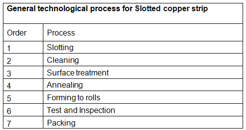 Splošni tehnološki postopek za bakrene trakove z režami